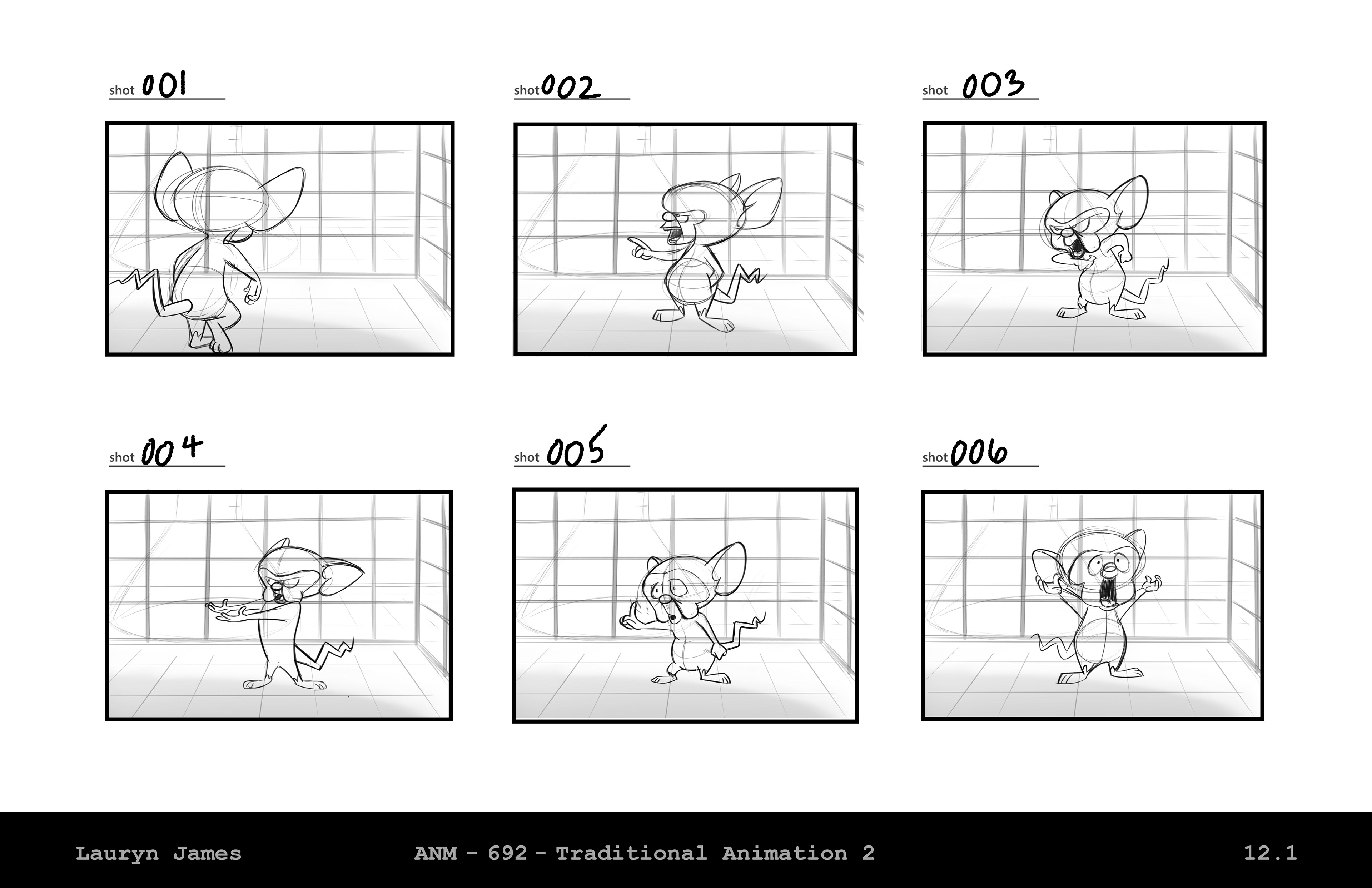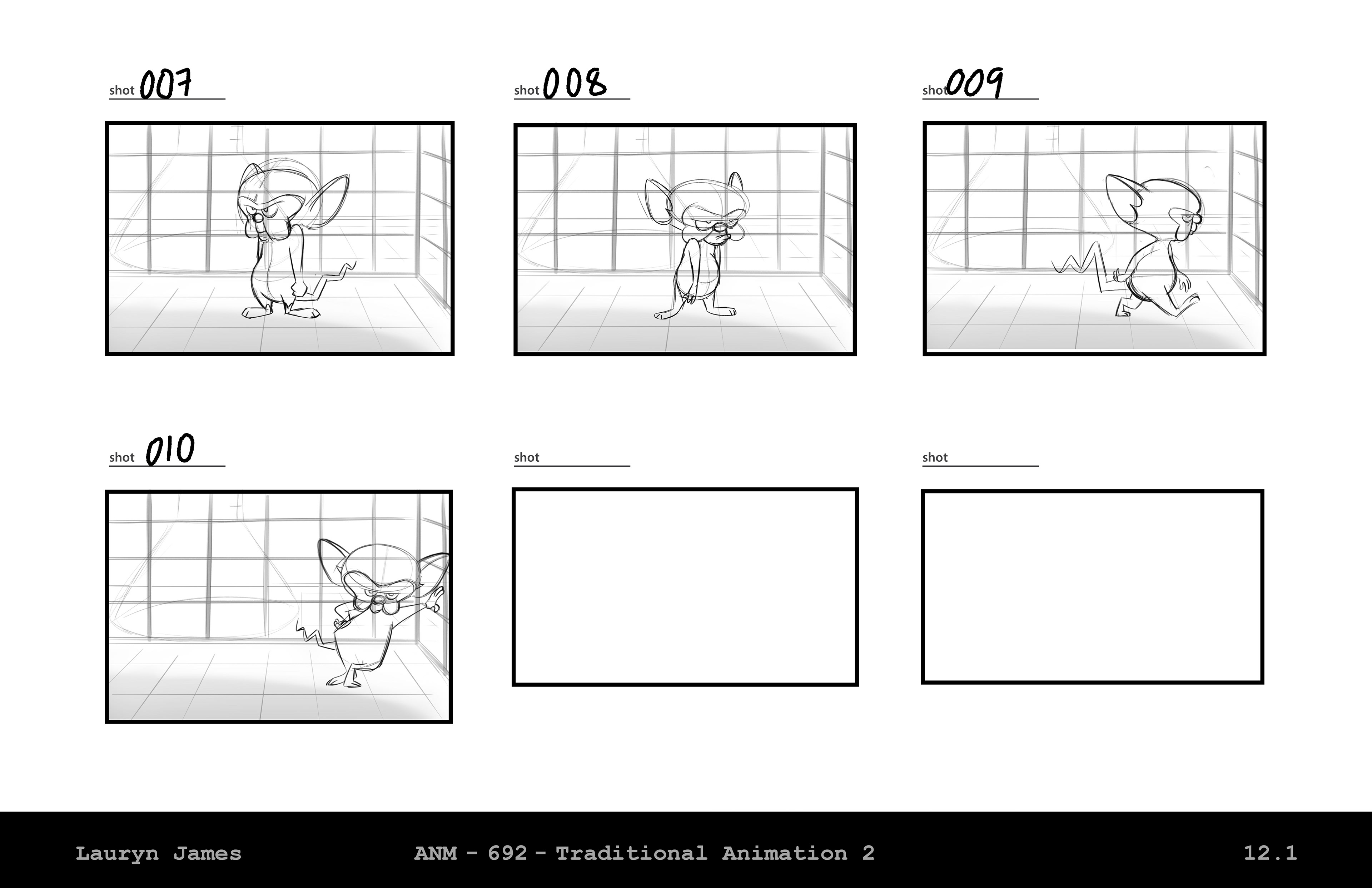 A dialogue animation study focusing on Brain from Pinky and the Brain. I analyzed the show and referenced model sheets to accurately emulate his movements, expressions, and personality throughout the scene.